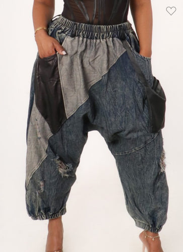 Patchwork Statement Denim Joggers
