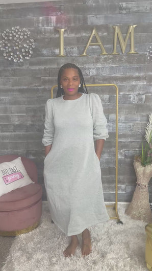 The Cozy Chic Sweat Dress is where comfort meets effortless elegance. Crafted in soft heather gray, this relaxed-fit dress offers the perfect blend of casual ease and refined style. With its structured puff shoulders, long sleeves, and hidden pockets, it balances laid-back comfort with a touch of sophistication. Whether you’re lounging in style, running errands, or dressing it up with bold accessories and heels, this versatile piece ensures you stay fashionably comfortable all day long.